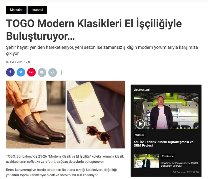 TOGO, Sonbahar/Kış 25-26 “Modern Klasik ve El İşçiliği” koleksiyonuyla klasik ayakkabıların sofistike zarafetini, çağdaş detaylarla buluşturuyor.